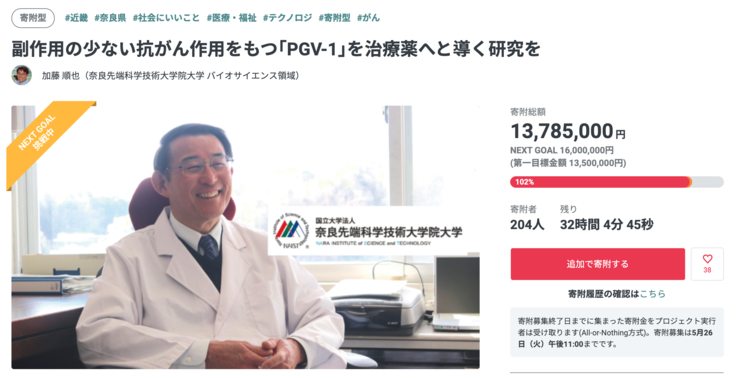 I hope the crowdfunding will be success to accelerate the cancer research in Kato sensei's lab.