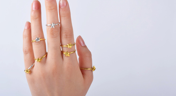 星の数やリングの大きさ、またペアリングなどお好みのデザイン/素材/サイズなど、フルオーダー制作させていただきます。このようにリングから全て手作業で制作しています!