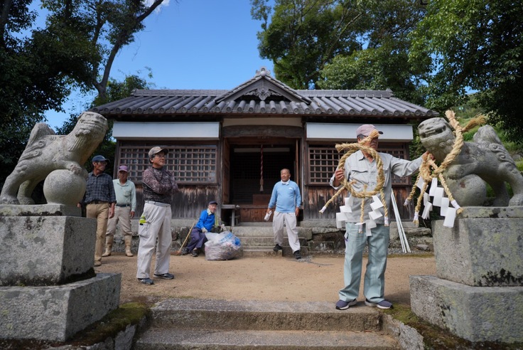 ただ、例大祭は毎年行いますので、こちらの準備は着々と進んでいます。今日は自治会の役員が春日神社に集まって、毎年恒例のしめ縄作りが行われました。