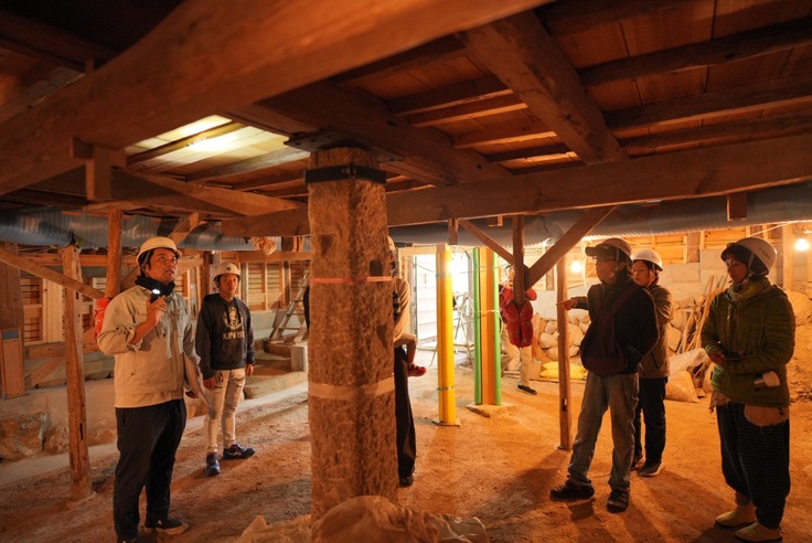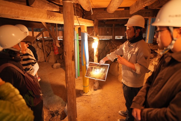 続いて奈落では、工事の内容やクラウドファンディングに挑戦するきっかけとなった想定外の傷み、回り舞台の構造などの説明を行いました。
