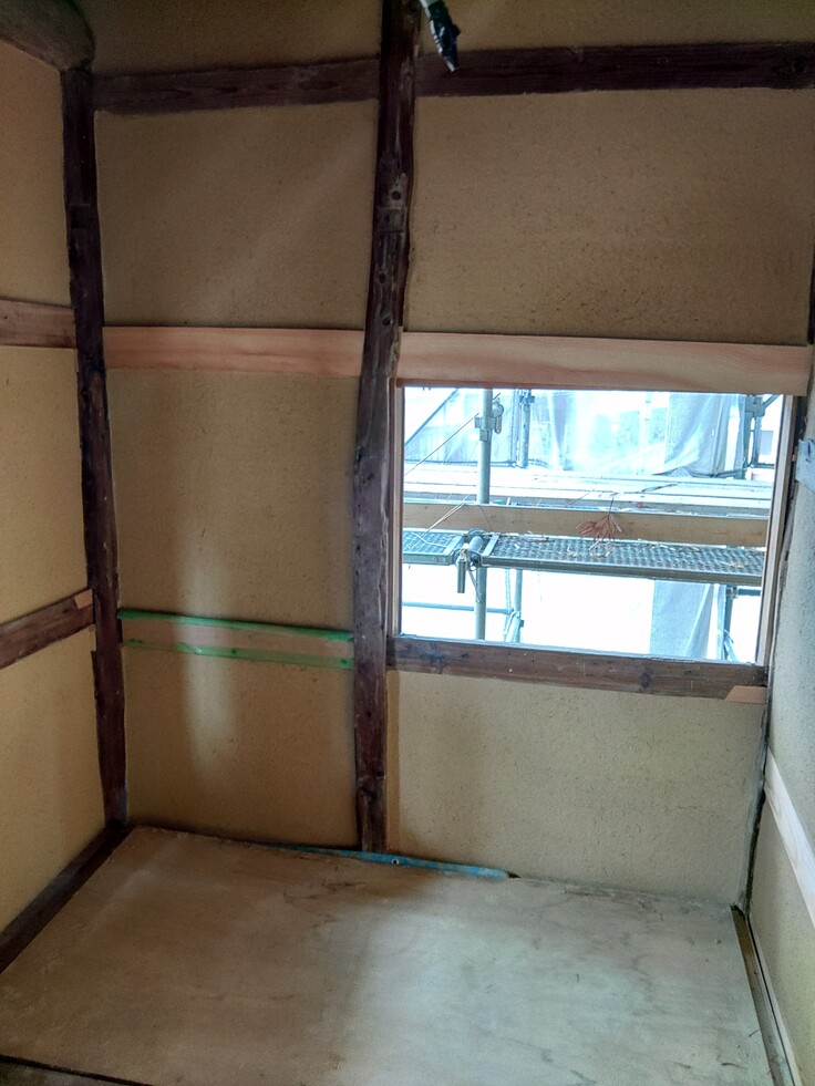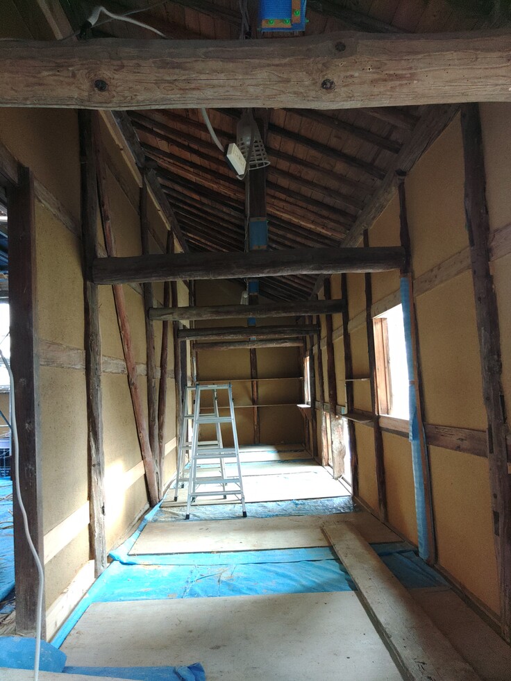 土壁もほぼ塗り終わり、だいぶ元の姿に戻ってきている感じがします。
