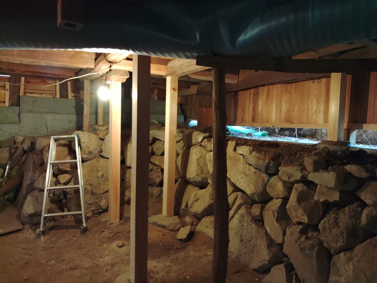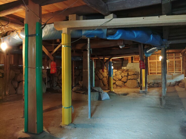 元からあった柱も、新しくなった柱も礎石の上に載っているだけで固定はされません。