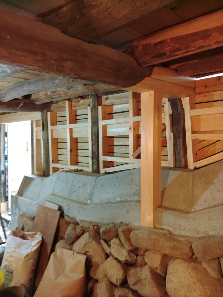 そして奈落。交換された梁、強度を確保するため追加された柱が数本見えます。