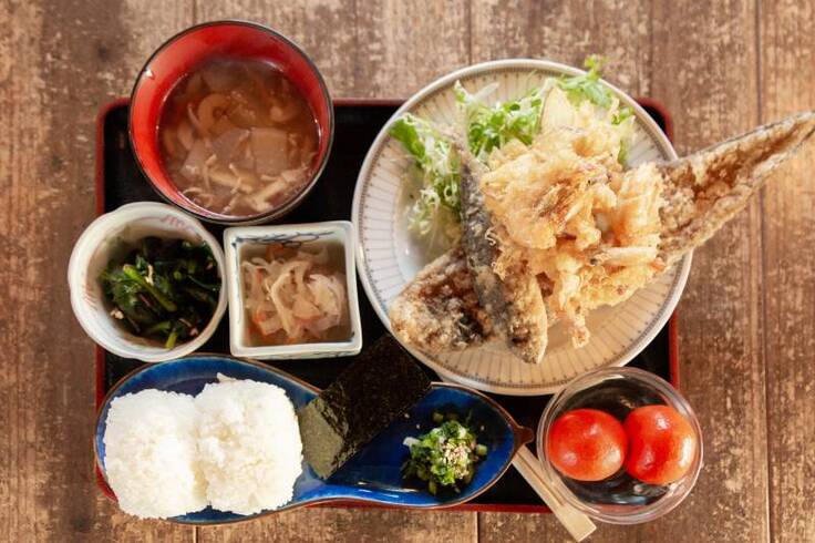 地元ガイドだからこそ知っている話などをたくさんさせていただき、最後に大人気のこまめ食堂のおにぎり定食をお楽しみいただきます。