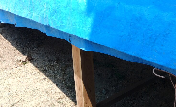 今回の大改修で、地面の高さが下がった(本来の高さに戻った)ため、従来の花道を載せる脚が全く合わなくなってしまいましたので、現状の高さに合うように作り直しました。水平を出して仮に設置した花道から採寸し、柱に臍を切って新しい脚が完成。現物合わせで作らなければならないので、ここでものすごく時間がかかりましたが、何とか無事に花道の設置も完了しました。