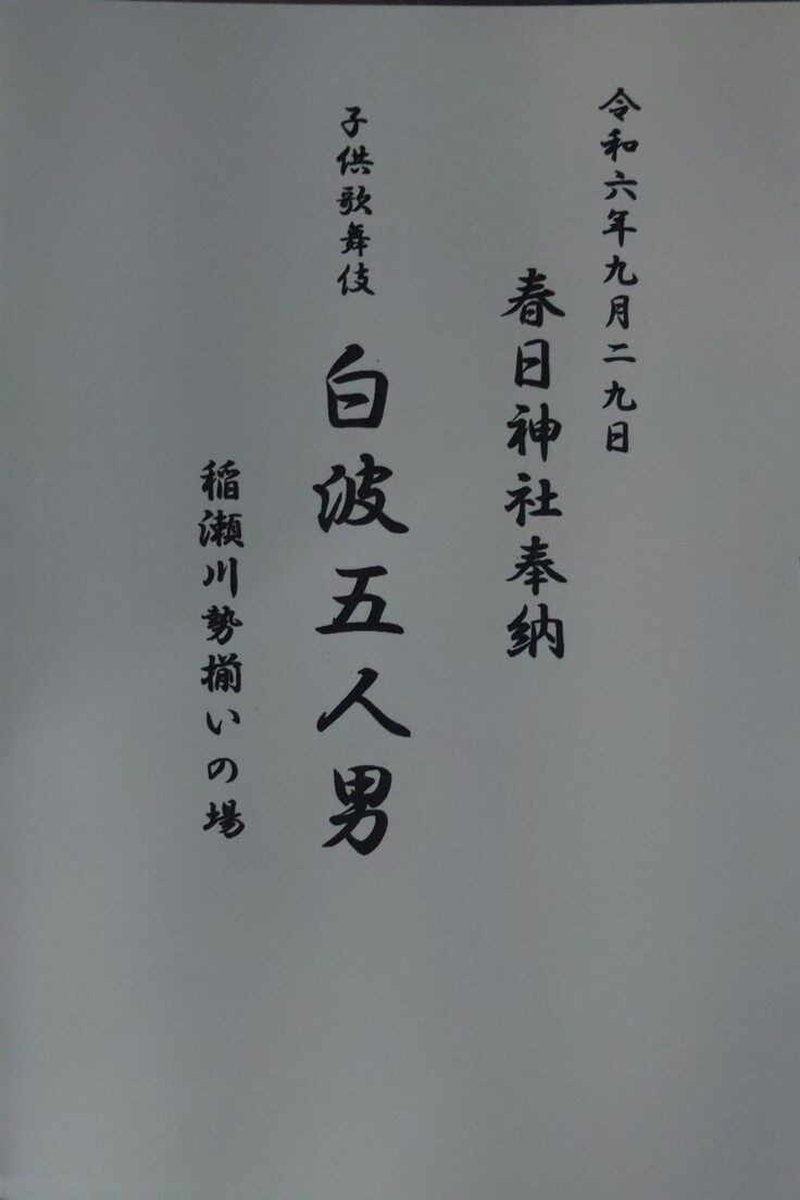 遡る事二週間。本年の演目が決まり、台本も出来上がって稽古が始まりました。子供歌舞伎の演目は、「青砥稿花紅彩画 稲瀬川勢揃いの場」通称白浪五人男です。本年の五人男は、中山の舞台大規模改修工事完成記念という事で、中山特別仕様のストーリーとなっております。こけら落としバージョンという事で、後にも先にも本年限りの特別な演出が盛り込まれておりますので、どうぞお楽しみに!