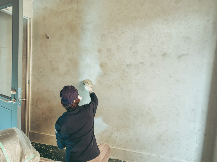 専門的な事はもちろん業者様にお願いをしておりますが、壁や床をペンキで塗り替える作業は自分たちで行っております。