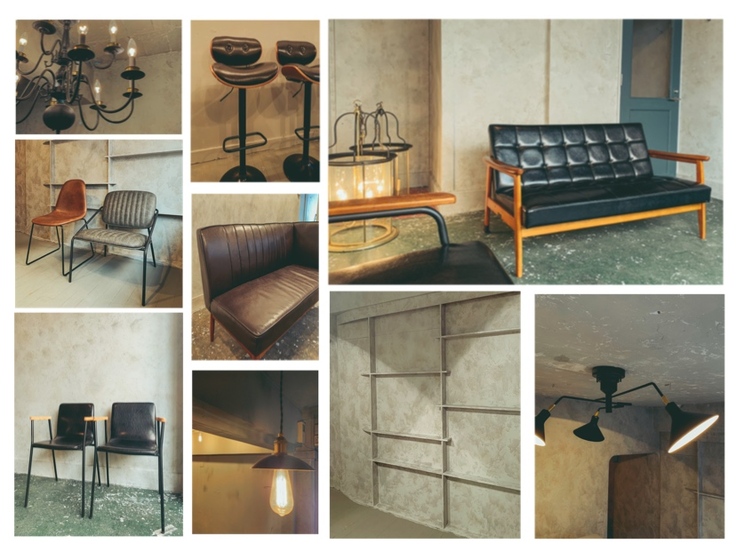 黒・真鍮・錆色・ブルーグレー・ウォルナット(焦げ茶)と落ち着いたカラーでまとめております。