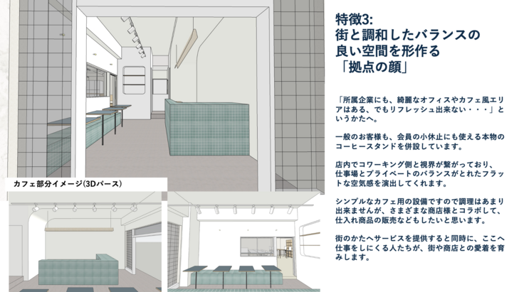会員制コワーキングと一般利用向けコーヒースタンドからなるコワーキングカフェ施設をオープンします。