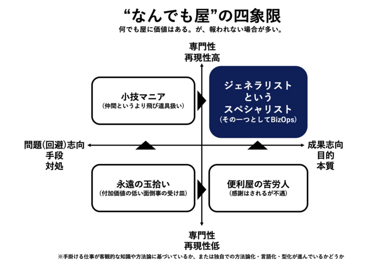 また、「なんでも屋」について表現し、なんでも屋は「ジェネラリストというスペシャリスト」になるんだというビジョンを書いた図です。