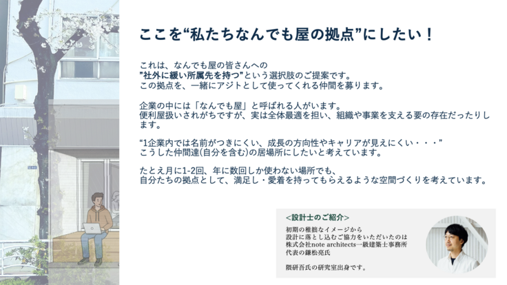 同じ課題感を持つみなさんと学びを共にして、成長していきたい、と"なんでも屋"について前向きに捉えています。