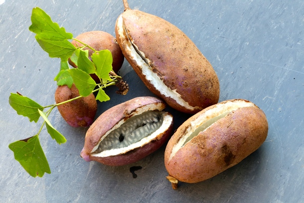 その途中で、アケビが美味しそうに実っているのを見つけて、誰かに教えたくなる。