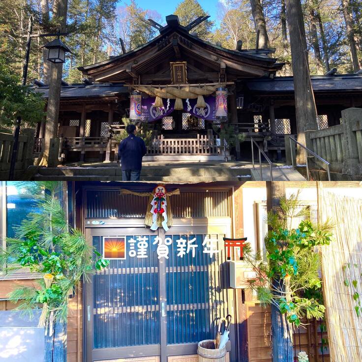 正面玄関には松飾り。