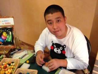 【手先の器用な息子は細かい作業を何時間でも続けられる集中力を活かし、得意の「たこやき」のマスコット作りや、フェルトボールを作り続けています。】