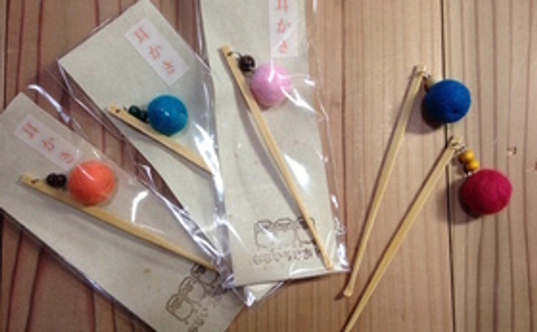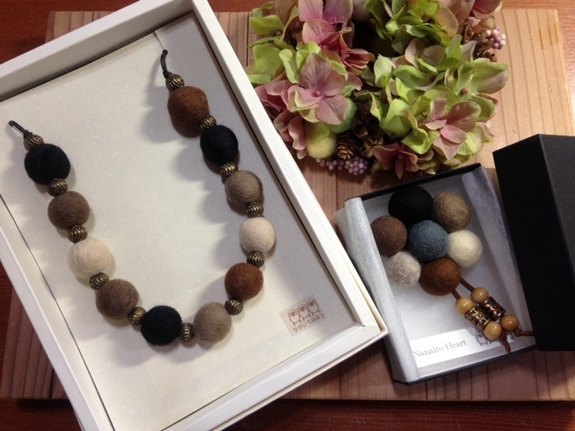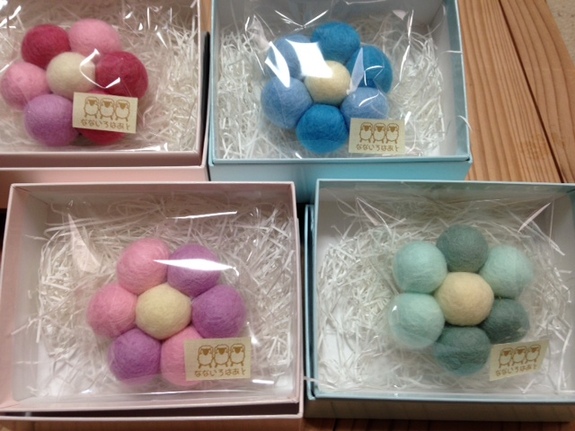 事業所でフェルトボールを作って頂き、その後私達でマスコットやアクセサリーに変えます。