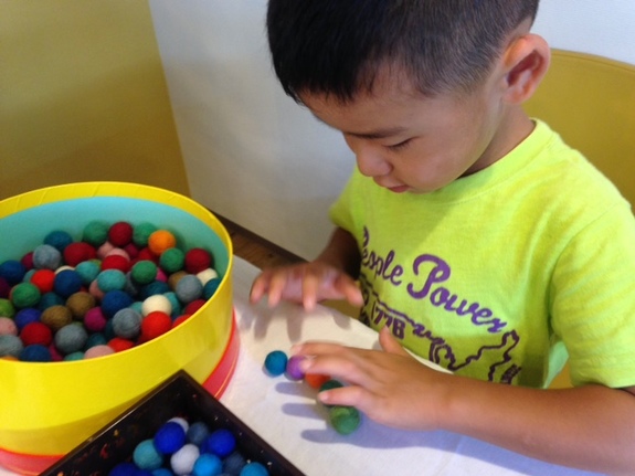 【この男の子は「かっこいいいいもむし作るねん!」と一生懸命色合わせを考えていました】