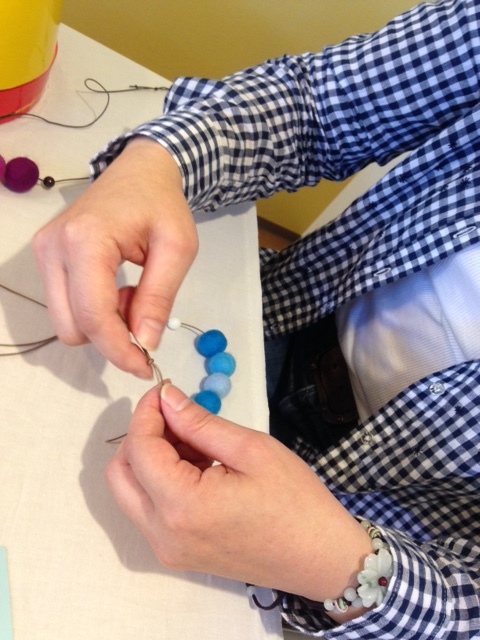 色とりどりのフェルトボールの中から色を選んでいらっしゃるお客さまはみなさんとても楽しそうです。