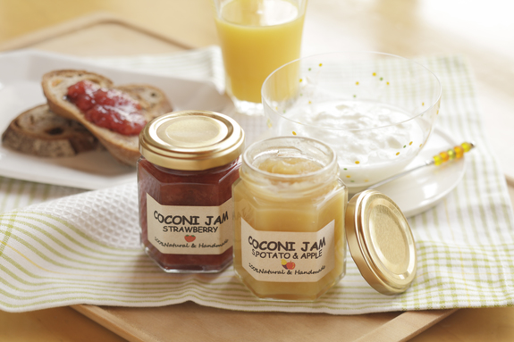 このcoconijam(ここにジャム)は、砂糖の使用を大幅に控えて素材本来の味を大切にしています。社会福祉法人こぶしの会「ここに」さんと山の辺ファームさんという事業所が提携し、「ここに」さんは素材の下処理の一部請負と仕入れ販売をしており、ラベルは「ここに」オリジナルのものを作成し、利用者の方がそれを張り付ける作業を担っています。
