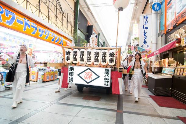 はじめまして!難波八阪神社地車凛打講の大東と申します!2001年の夏に、氏子衆と地元企業・団体の支援と熱意で、二百数十年途絶えていた難波八阪神社船渡御とともに復活しました。凛打講は激しく凛々として大太鼓・小太鼓、 地車囃子を奏で、人の持つ生命の勢い、力を地車囃子に託し神に奉納致しております。