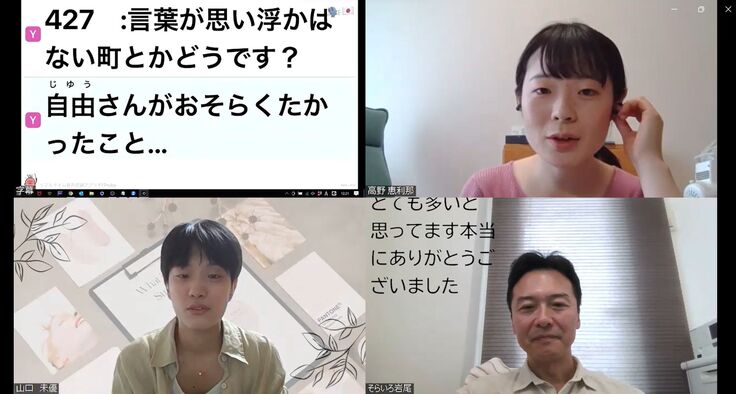 せっかくのいい話なので、家族会外からも興味のある方はとい紹介しましたが、難聴の大学生が結構来てくれまして、自分たちのちょっと上の先輩の話を熱心に聞いてくれました。