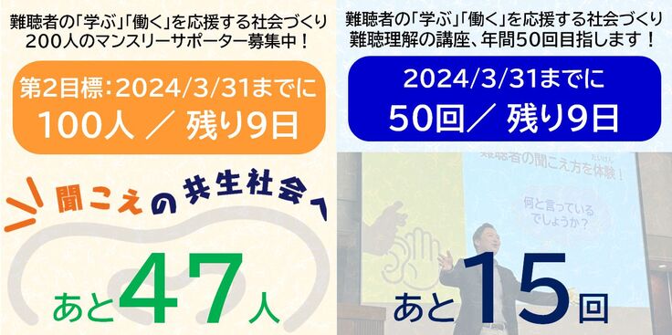ただ、数が大切ではなく、数は目安で、目的は、難聴者の「学ぶ」「働く」を応援する社会づくりです。
