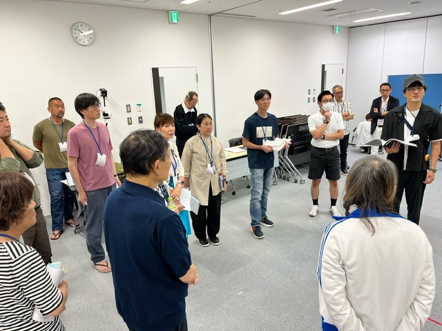 演出の方針等の説明を神妙に聞く参加文士たち。