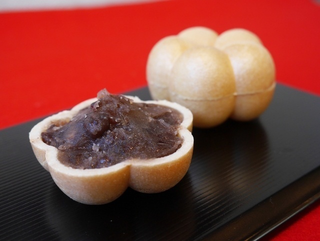 梅の花をモチーフにした形の最中種に伝統の自家製つぶ餡をたっぷり挟んで作ったのが、今回ひとつめのメイン商品「なにわ梅最中」です。