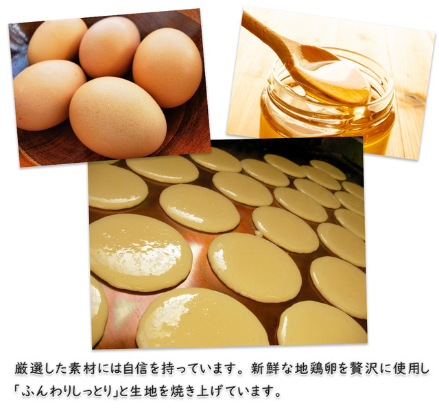 ほんのりした甘さでしっとりとしたカステラ生地と自家製つぶ餡の絶妙なバランスは地元豊中のまさに名物となっており、日々絶え間なく出入りするお客さん達も必ずと言って良いほど手に取り、買って帰っていただける逸品です。