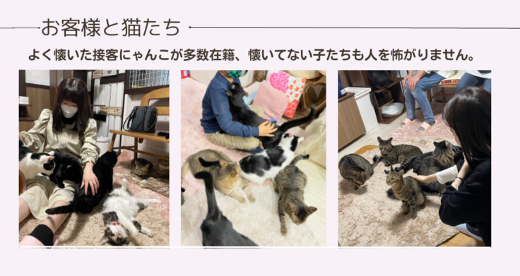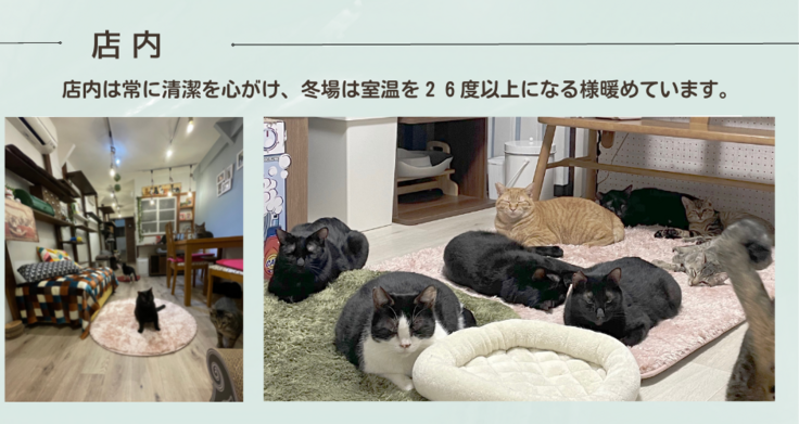 カフェでは猫の保護について悩まれている方のお手伝いやアドバイス、病気の猫を飼われている方とは治療方法のご相談など、猫と真剣に向き合っておられる全てのお客様と誠心誠意お話をさせて頂いています。(グーグル評価5を頂いています)