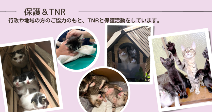 多頭崩壊をしたお宅から猫を全頭引き取り、2018年4月に保護猫カフェを始めました。保護猫カフェ以外にも近所の猫たちのTNR活動を行政と一緒に取り組んでいます。 その際出会ったリリースが難しい弱った子たちや子猫などはカフェに迎え、里親様を探しています。