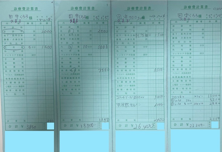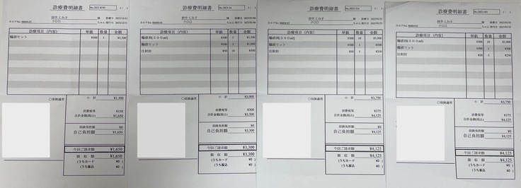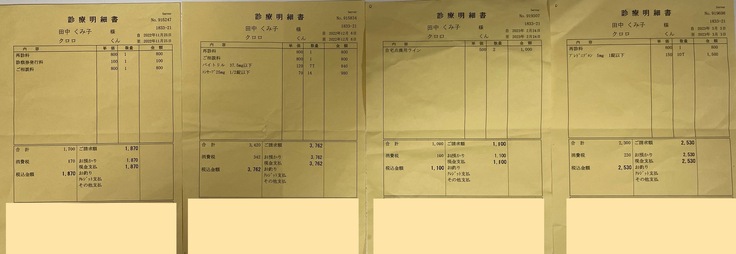 ※掲載している以外にも、療法食代や薬代、H病院までのタクシー代(片道5,000円以上)等がかかっています。