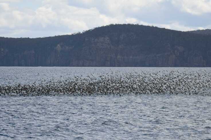 ナギドリの大群。彼らは南極海で何度もみたハシボソミズナギドリ
