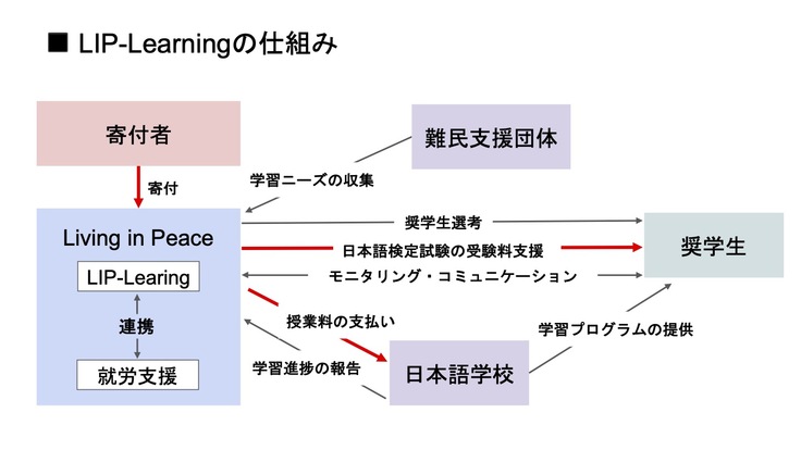 2022年12月から2023年11月までの1年間、認定特定非営利活動法人 Living in Peaceが2022年度のLIP-Learningプログラムとして、難民20名に1年間のオンライン日本語プログラムを提供します。
