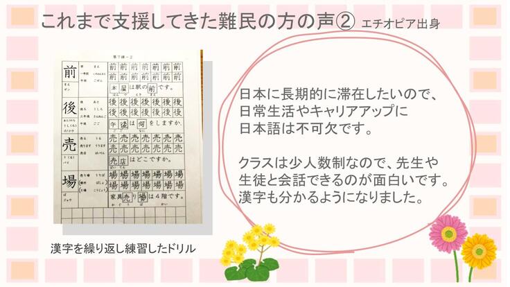 日本に住む難民の方々は、十分に日本語を学ぶチャンスを得られていない。