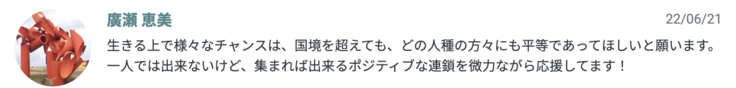 前回に引き続き、今回も皆さまから寄せられた応援メッセージの中からいくつかご紹介します。