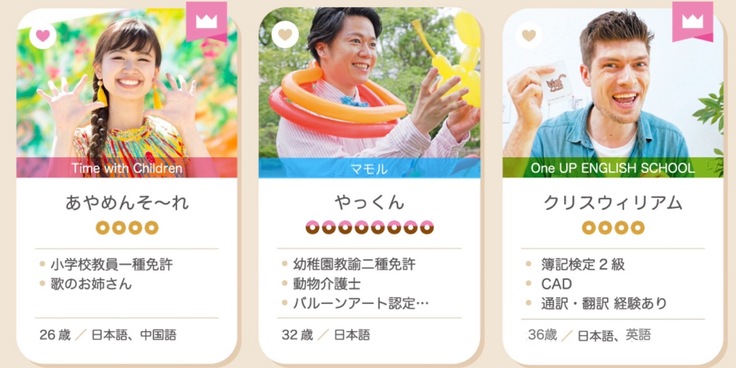 保育資格や教育免許をもった子供と遊ぶプロを中心に、