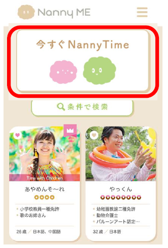 Nanny(保育実施者)・ME(育児サポートを受けたい方)共に、