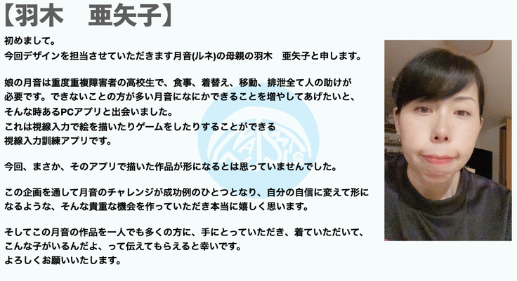 今回のクラファンのために月音ちゃんにデザインを作成していただきました、限定デザインのTシャツになります。