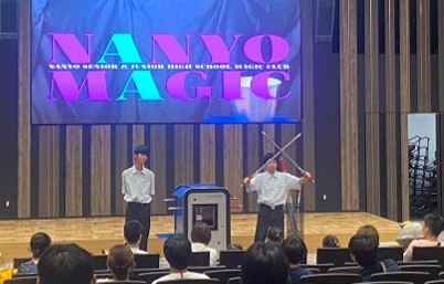 こんにちは。京都府立南陽高等学校マジック部員の山﨑稜太と申します。僕たちマジック部は、マジックとジャグリングをしている部活です。年に20回以上、地域のこども会や老人ホーム、夏祭りなどで依頼を頂いて公演をしています。またこれまで、「和牛のギュウギュウ学園」や「岡崎体育の京の観察日記」などテレビ出演もしています。マジック部は南陽高校の創立時に作られた部活として、高校の歴史と共に38年間活動を続けています。