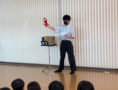 ご支援いただきました資金で、新たにイリュージョンマジックを購入させていただきます。そして地域のこども会や老人ホーム等のイベントへ出演させていただき、そのイリュージョンマジックを披露することで、より多くの方に南陽高校・附属中学校マジック部のマジック&ジャグリングショーを楽しんでいただき、地域の活性化に貢献したいと思います。
