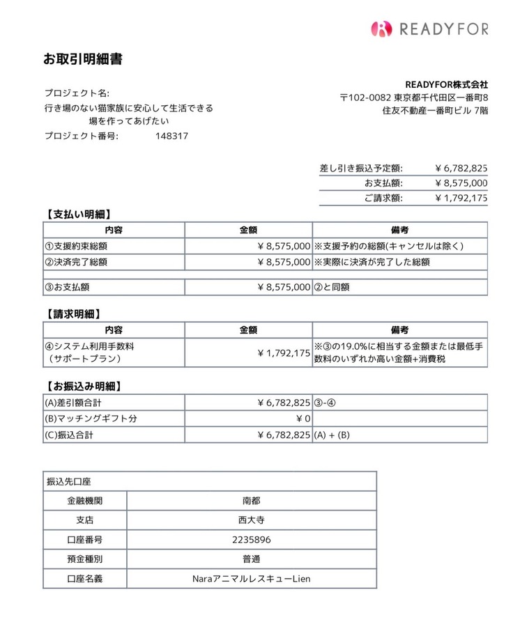皆さまからの温かいご支援は2月10日振り込みして下さるそうです。