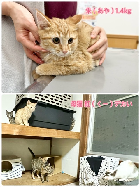 母猫の紅(くー)ちゃん、子供を連れて行かれないよう必死に盾となり、威嚇しまくってたので捕まえるのが大変でした💧