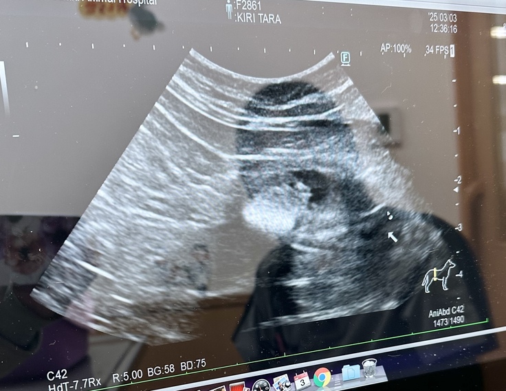 膀胱内に砂状の結石あり、ストルバイトの可能性大ということです。