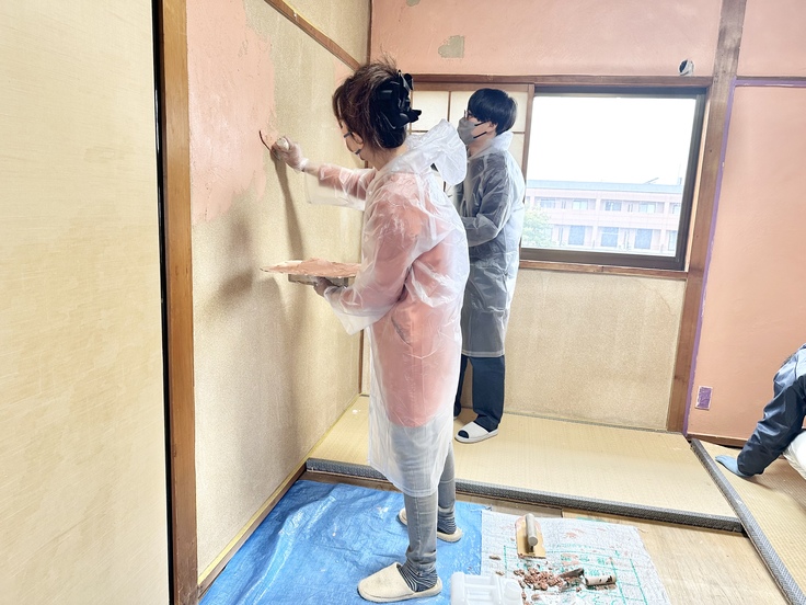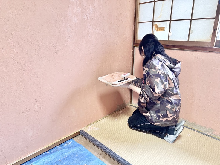 職人さんの賃金削減のため無償で壁塗りして下さってます