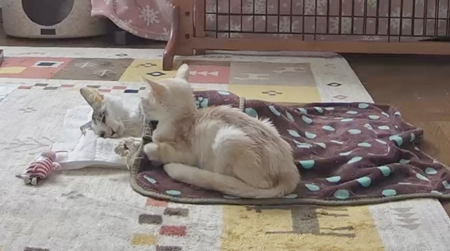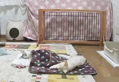 残された丸(まる)ちゃんは一晩中そばを離れることはありませんでした。※見守りカメラで確認