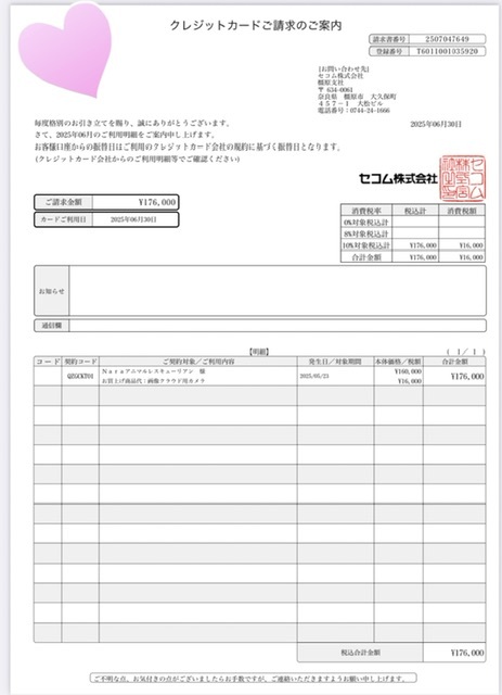 本日、SECOMさんの明細書を確認できましたので、皆さまからのご支援金6782825円を全て使わせていただきました。