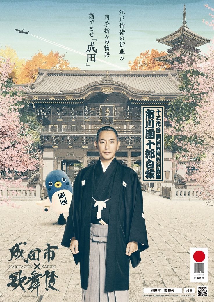 また、成田市では、成田山開基1080年祭記念行事や節分会で本市を訪れるなど、なじみの深い十三代目市川團十郎さんを「成田市御案内人」に任命しています。