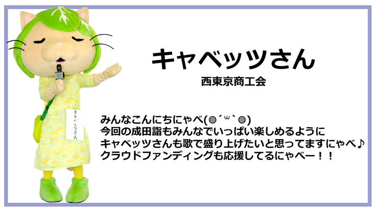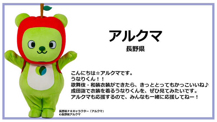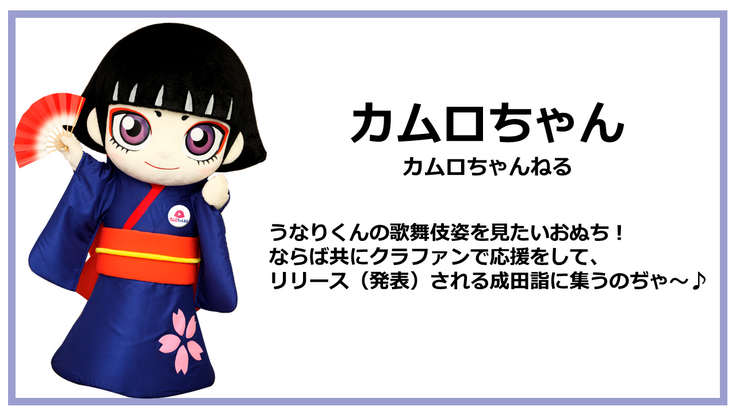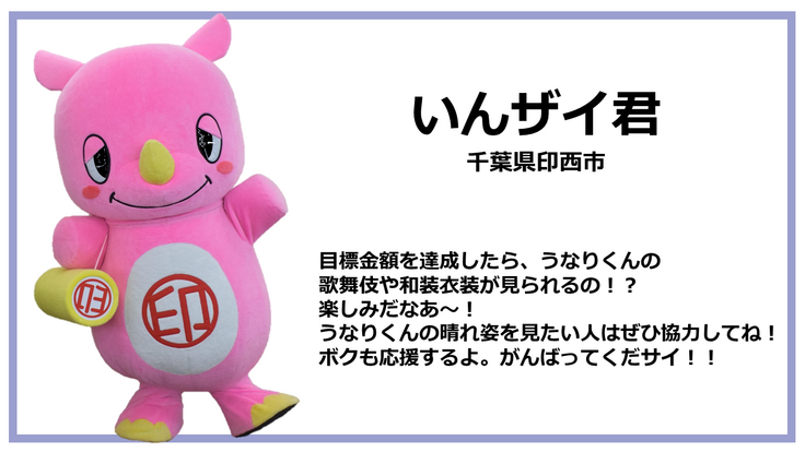 今回のプロジェクトを通していただいたご支援は「歌舞伎のまち成田」ならではの、うなりくんの「歌舞伎衣装」制作費用に充てる予定です。