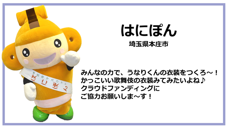 ■目標金額の使途および実施内容:うなりくんの「歌舞伎衣装」を制作します。