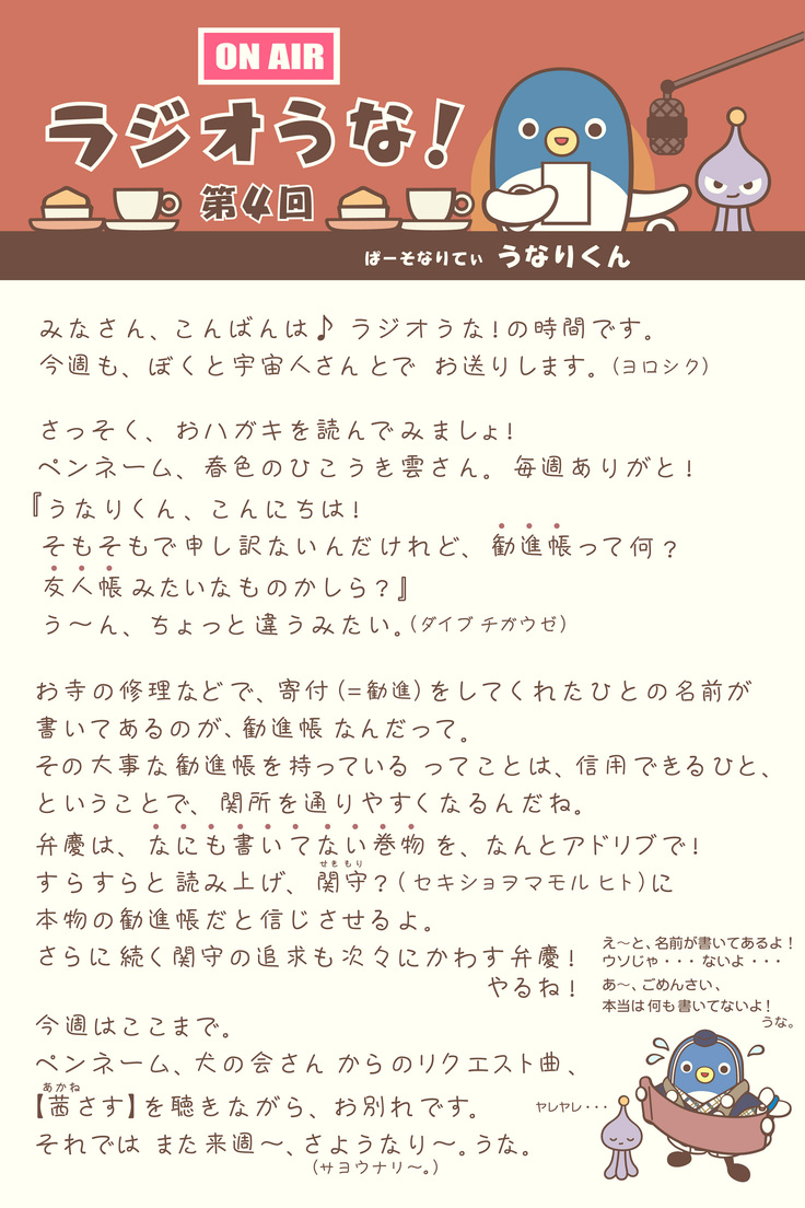 【ON AIR】第4回『ラジオうな!』 ぱーそなりてぃ:うなりくん